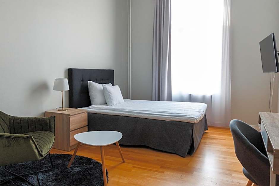 This room has a bigger work desk, a small double bed.